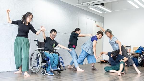 People of different ages and with mixed abilities are encouraged to express themselves freely through their body movements in the workshop.