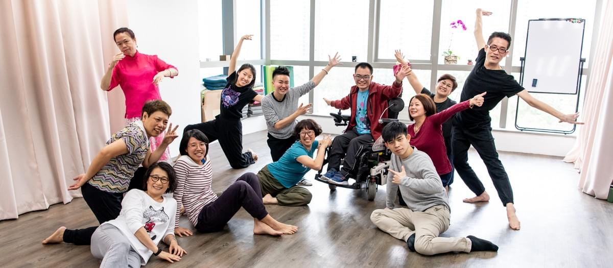 People of different ages and with mixed abilities are encouraged to express themselves freely through their body movements in the workshop. It helps connecting self and others, and the process is fun and creative.